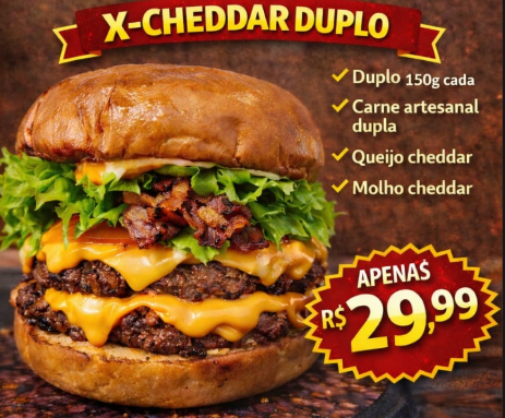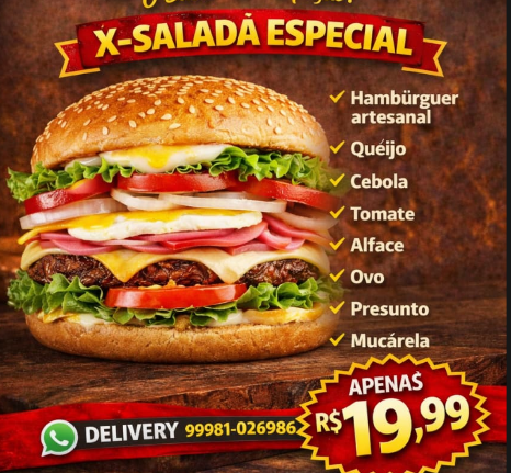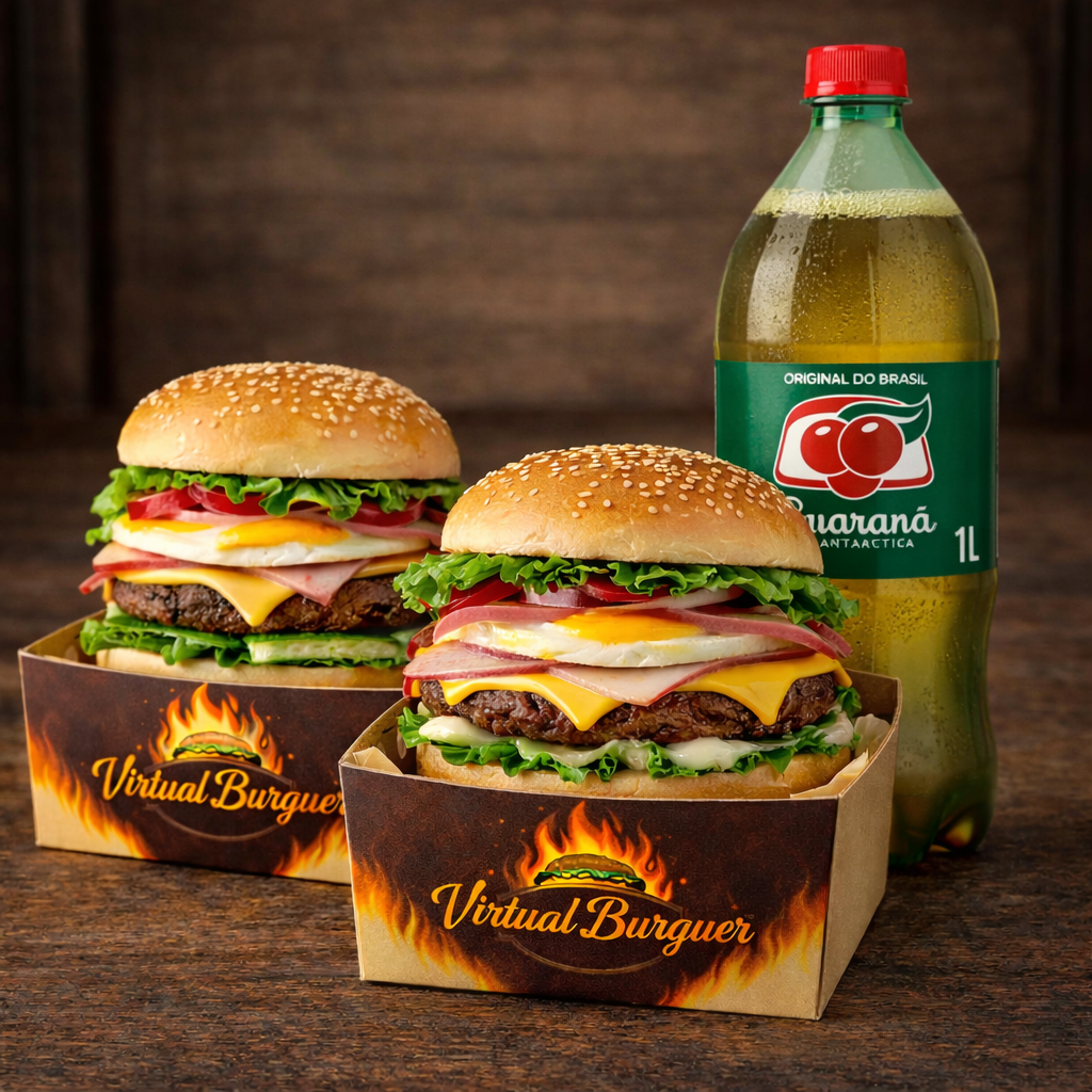 Dois Hambúrguers com queijo, ovo, presunto, salada e maionese e uma...