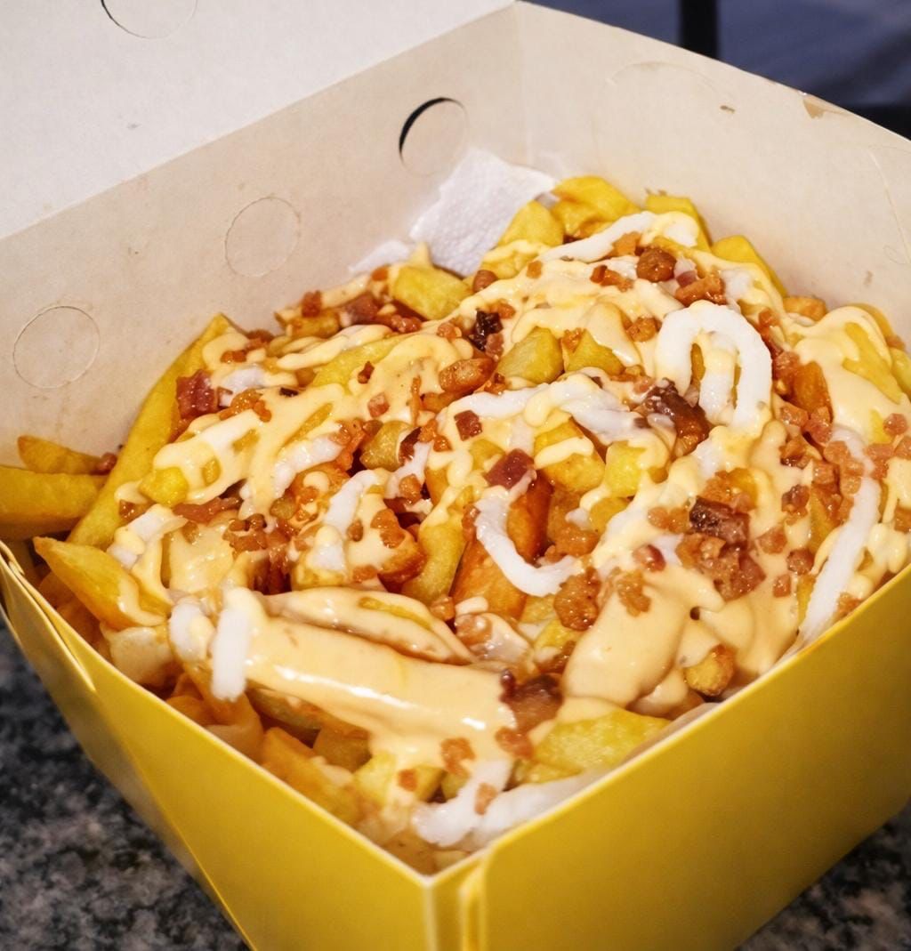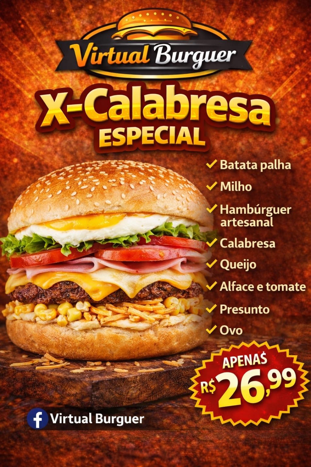 Dois Hambúrguers com queijo, ovo, presunto, salada e maionese e uma...
